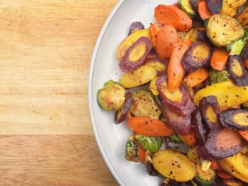 Toss vegetables in olive oil and Jay D’s Spicy & Sweet BBQ Rub. Between three sheet pans or working in batches, pour the vegetables on sheet pan, leaving room for even roasting (and prevent steaming). Roast for 30 minutes or until vegetables are tender.